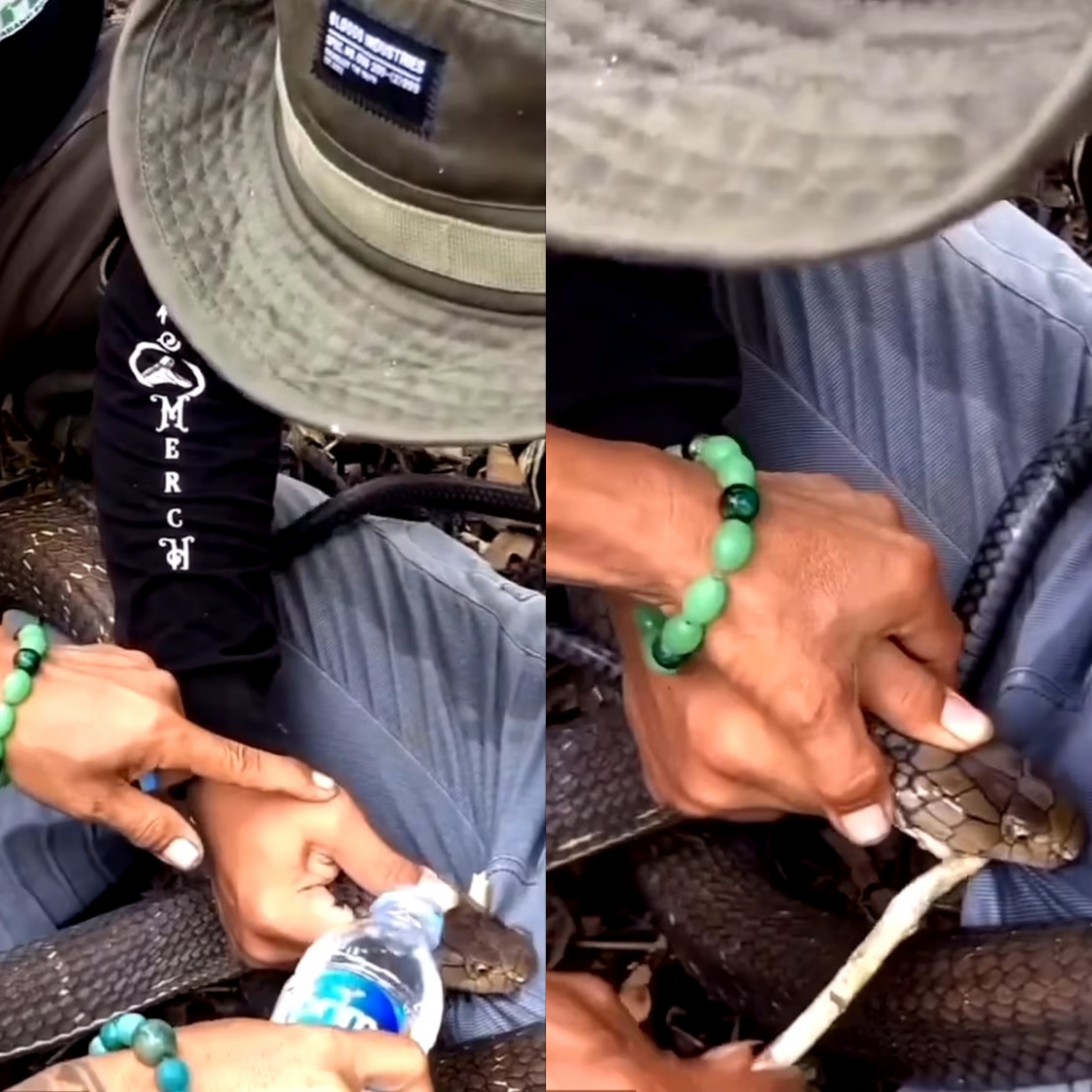 A third person bravely stepped in to remove the obstinate reptile with a stick, forcing the rod into the snake’s jaws in an effort to break its grip.