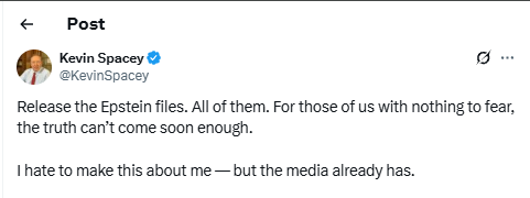Spacey wrote on X that “the truth can’t come soon enough.”